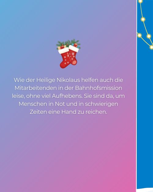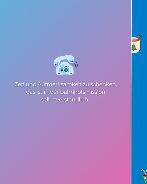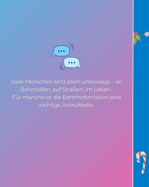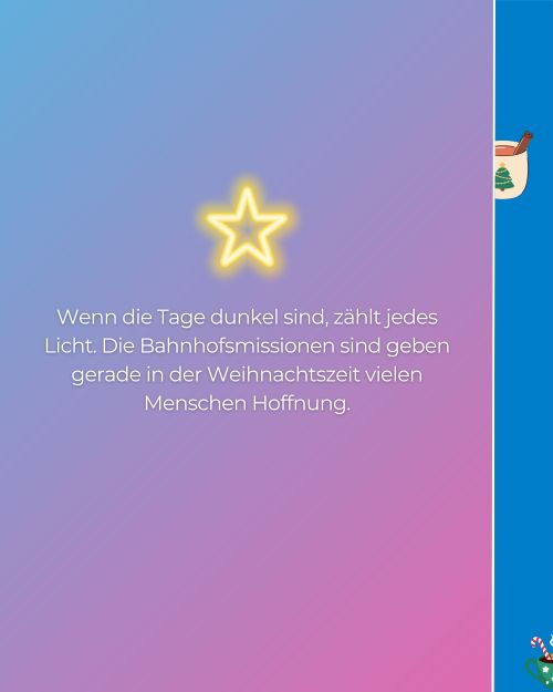 Inspiriert von der täglichen Arbeit der Bahnhofsmissionen haben wir für euch einen besonderen Adventskalender vorbereitet: "Kleine Gesten. Große Wirkung". Jeden Tag eine neue Idee, wie wir ein bisschen Wärme weitergeben können – leise, einfach, mitten im Alltag.